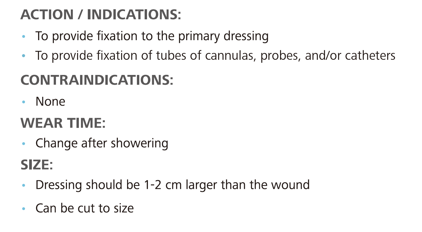 固定傷口敷料並提供完整覆蓋效果; 尤其適用於關節、身體圓形和轉角部位;